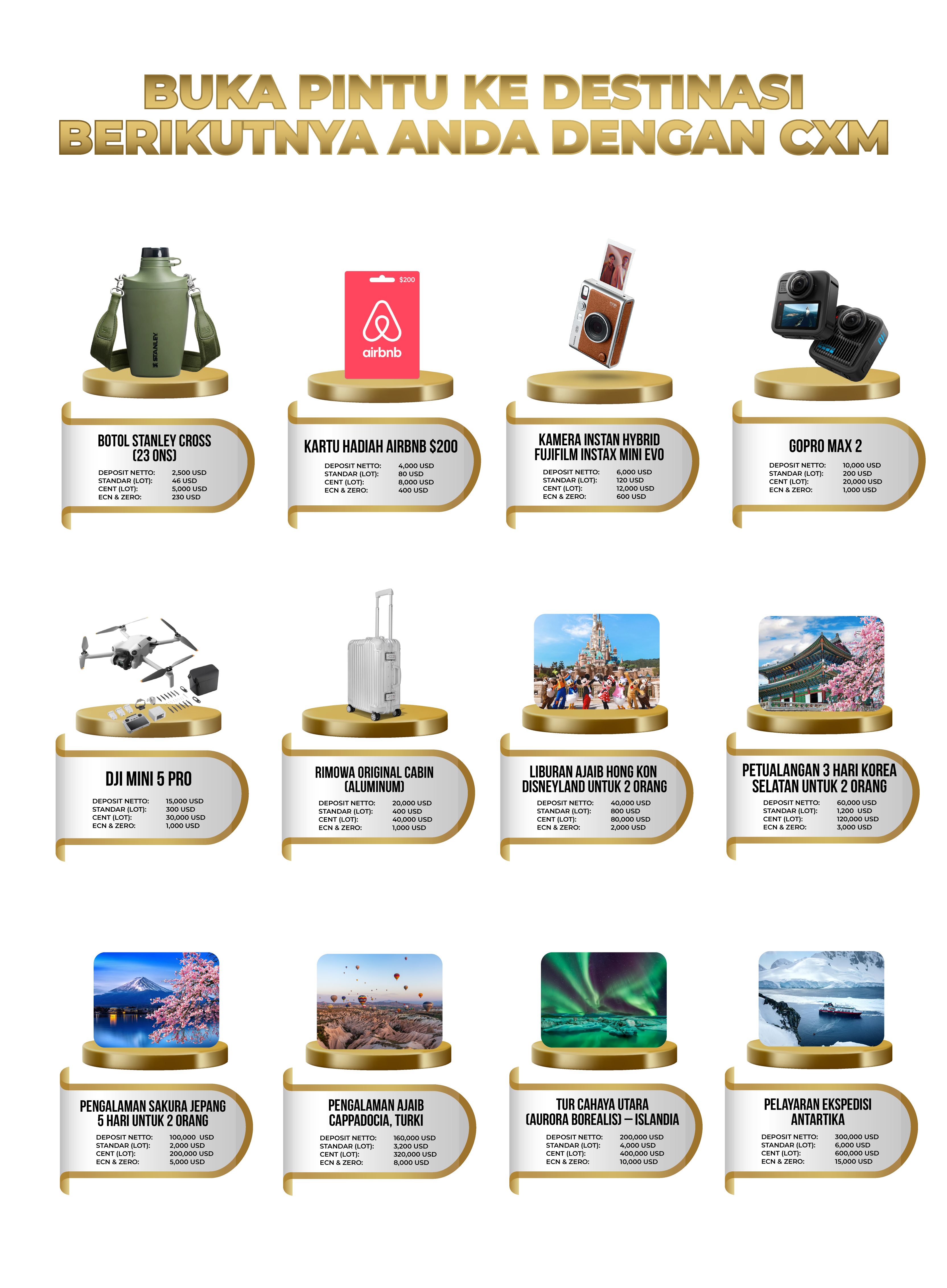 Promosi ini terbuka untuk semua klien CXM baru dan yang sudah ada, tanpa memandang tanggal pendaftaran akun mereka.