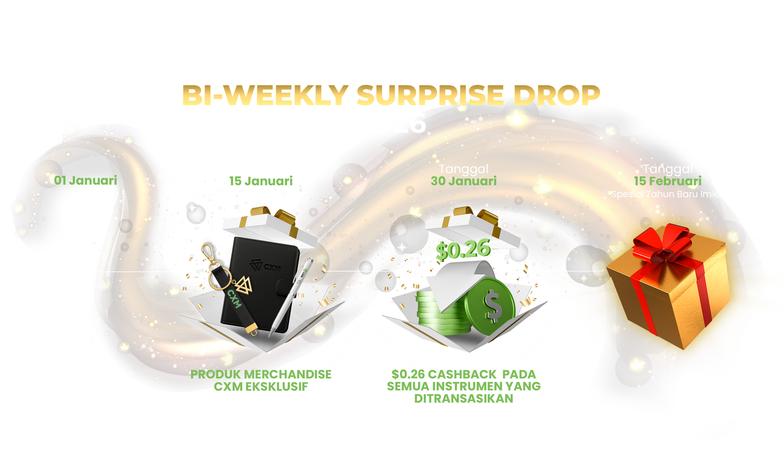 Perjalanan Anda tidak berhenti pada satu hadiah saja. Setiap dua minggu, Takeoff Drop baru diluncurkan — membawa hadiah kejutan, manfaat terbatas waktu, dan momen spesial yang tidak ingin Anda lewatkan. Tetap terdaftar, terus berdagang, dan saksikan setiap drop mengubah transaksi Anda menjadi lepas landas yang menarik sepanjang musim.