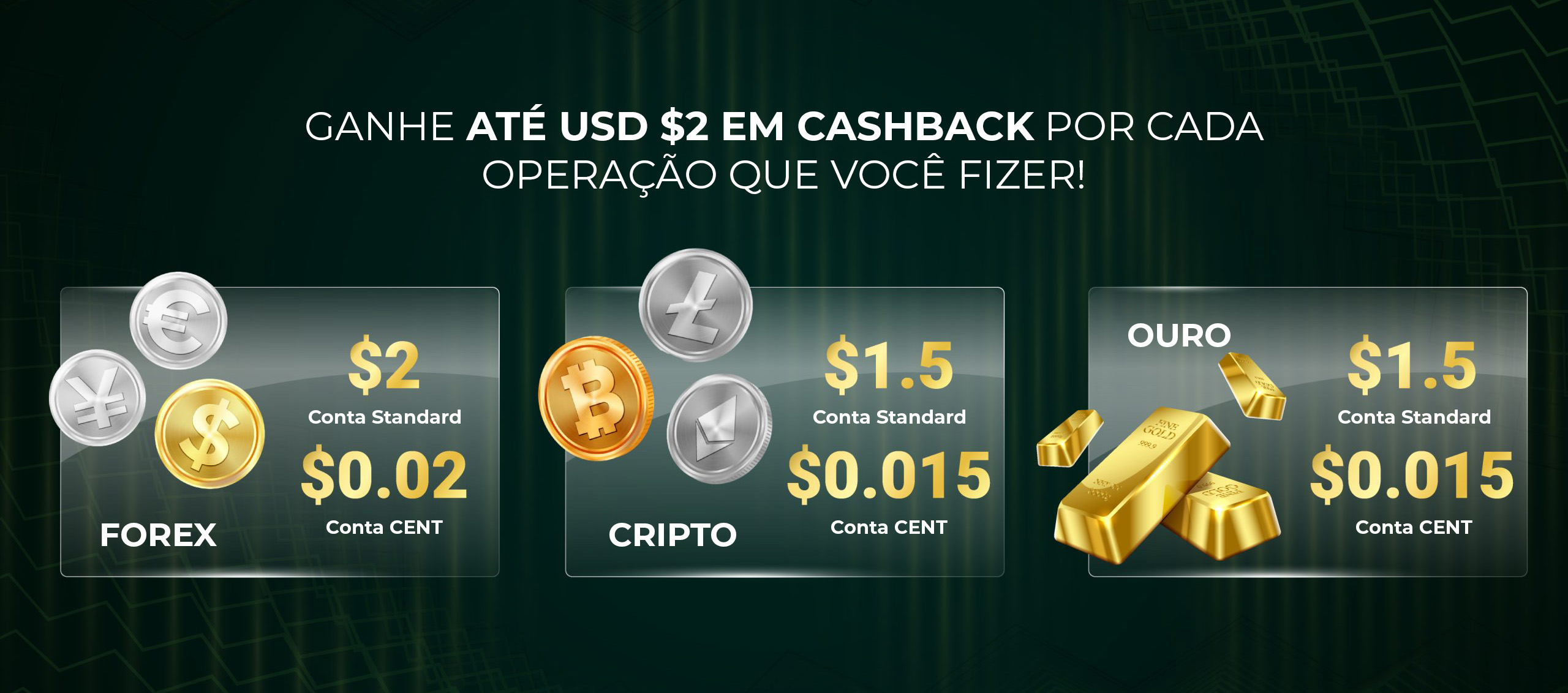 Todos os clientes, novos e existentes, são elegíveis para participar, independentemente da data em que a conta MT5 foi registrada. O cashback será concedido para cada 1 lote Round Turn (RT) operado.