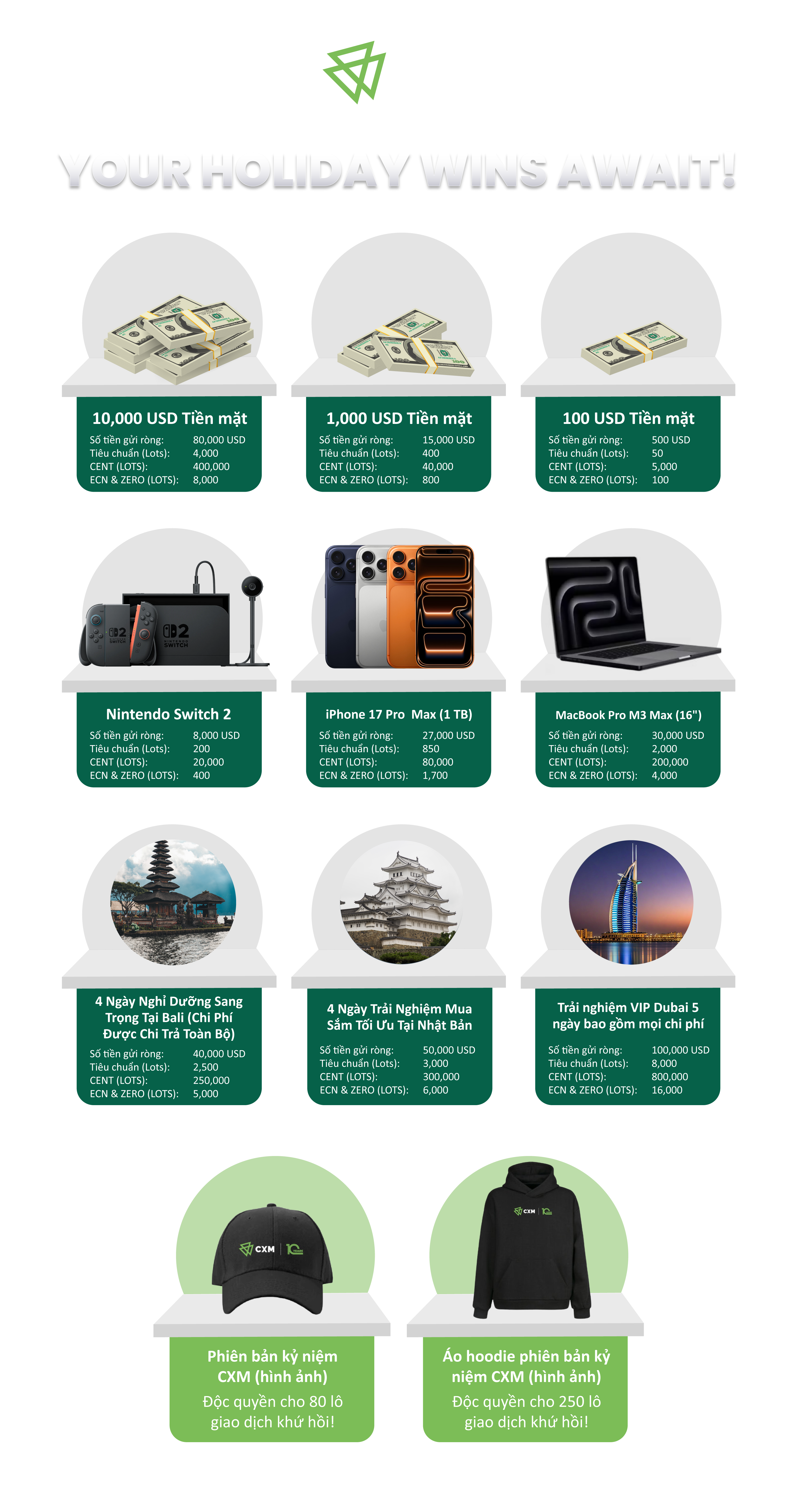 Chương trình khuyến mãi này áp dụng cho tất cả khách hàng mới và hiện tại của CXM, bất kể ngày đăng ký tài khoản.